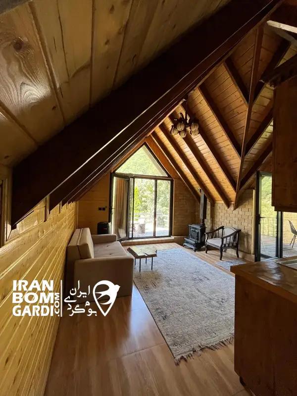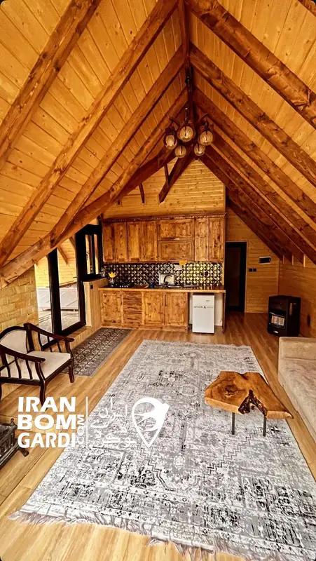کلبه با زیربنای 60 متر در طبقه همکف شامل اتاق پذیرایی (مبلمان، کاناپه تختخوابشو، تلویزیون)، 1 اتاق خواب (1 تخت دبل، 2 سرویس کف خواب، جاروبرقی)، تراس( جکوزی، میز و صندلی)، آشپزخانه با امکانات (یخچال، اجاق گاز، میز غذاخوری، سینک ظرفشویی، ظروف غذاخوری و ظروف طبخ غذا)، سیستم گرمایشی گرمایش از کف و شوفاژ، بدلیل موقعیت جغرافیایی پنکه کفایت میکند، سرویس بهداشتی ایرانی- فرنگی و حمام اختصاصی.