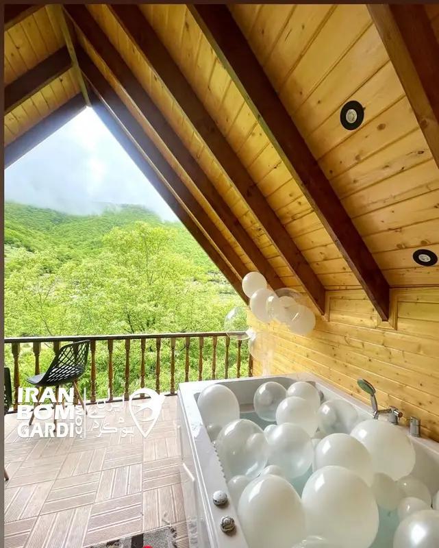 کلبه با زیر بنای 60 متری شامل اتاق پذیرایی، امکانات آشپزی، 1 اتاق خواب، تراس، جکوزی، سرویس بهداشتی و حمام اختصاصی می باشد.