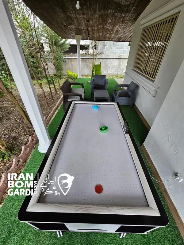 ویلا با زیربنای 280 متر شامل اتاق پذیرایی (مبلمان و تلویزیون)، 2 اتاق خواب (2 تخت دبل و 5 سرویس کف خواب)، امکانات آشپزی (یخچال، اجاق گاز، سینک ظرفشویی، سیخ کباب، ظروف پخت و پز و غذاخوری)، تراس (میز و صندلی)، استخر، باربیکیو، میز بیلیارد، میز ایرهاکی، میز پینگ پنگ، تاب، آلاچیق، سرسره، سیستم صوتی، سیستم گرمایشی بخاری و شوفاژ، سیستم سرمایشی کولر اسپلیت، سرویس بهداشتی ایرانی- فرنگی و حمام اختصاصی.