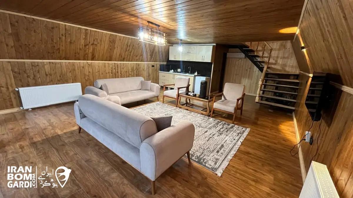 کلبه سوئیسی در فاصله 7 کیلومتری ساحل چالوس واقع شده است. این ویلا در زمینی به مساحت 200 متر به صورت دوبلکس بنا شده است. ویلا بصورت دربست در اختیار میهمان قرار میگیرد.