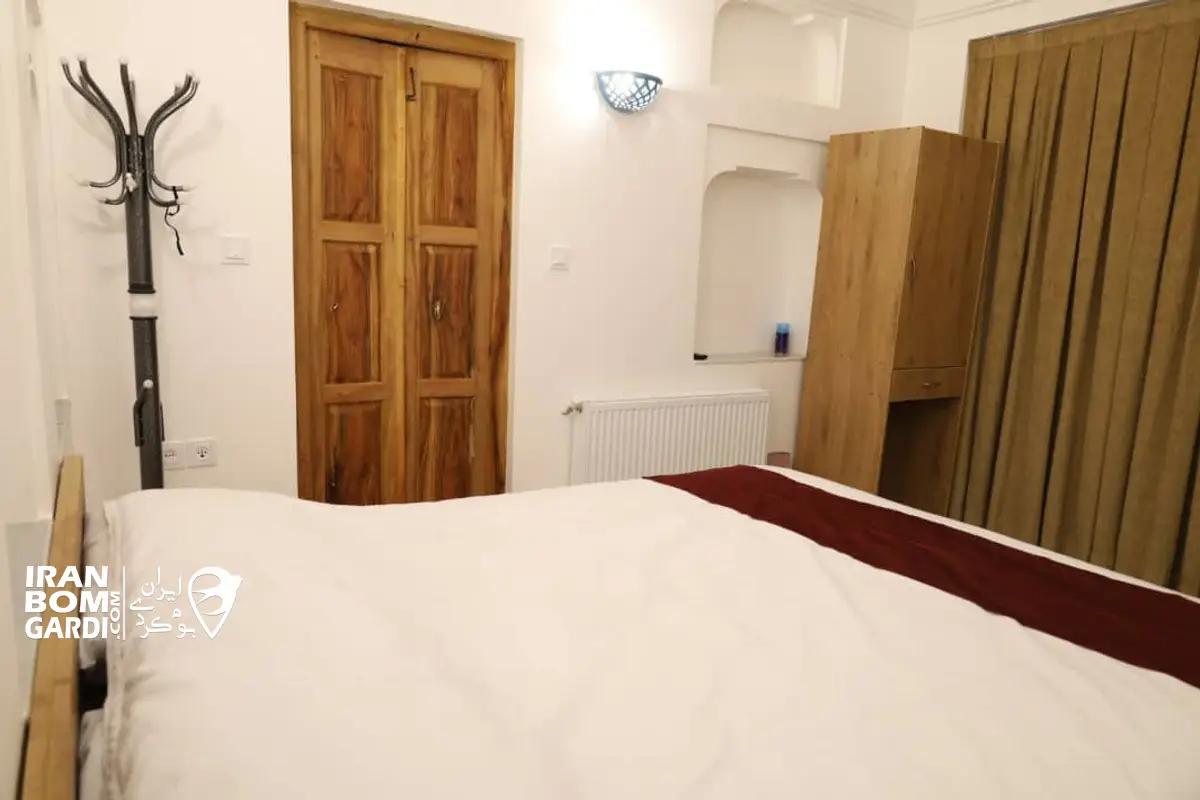 اتاق 12 متری شامل 1 تخت دبل، 2 تخت سینگل، پک بهداشتی (صابون، شامپو، حوله، مسواک ، خمیردندان)، یخچال، کمد لباس، میز آرایش، سیستم سرمایشی کولر اسپیلت، سیستم گرمایشی شوفاژ، آشپزخانه مشترک (یخچال، اجاق گاز، توستر، ماکروفر، سینک ظرفشویی، ظروف غذاخوری و خوراک پزی)، سرویس بهداشتی ایرانی- فرنگی و حمام اختصاصی.