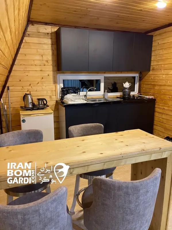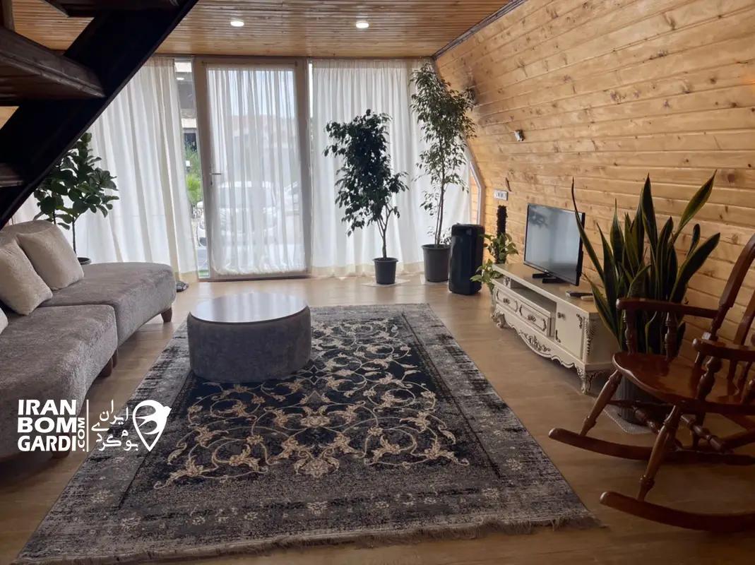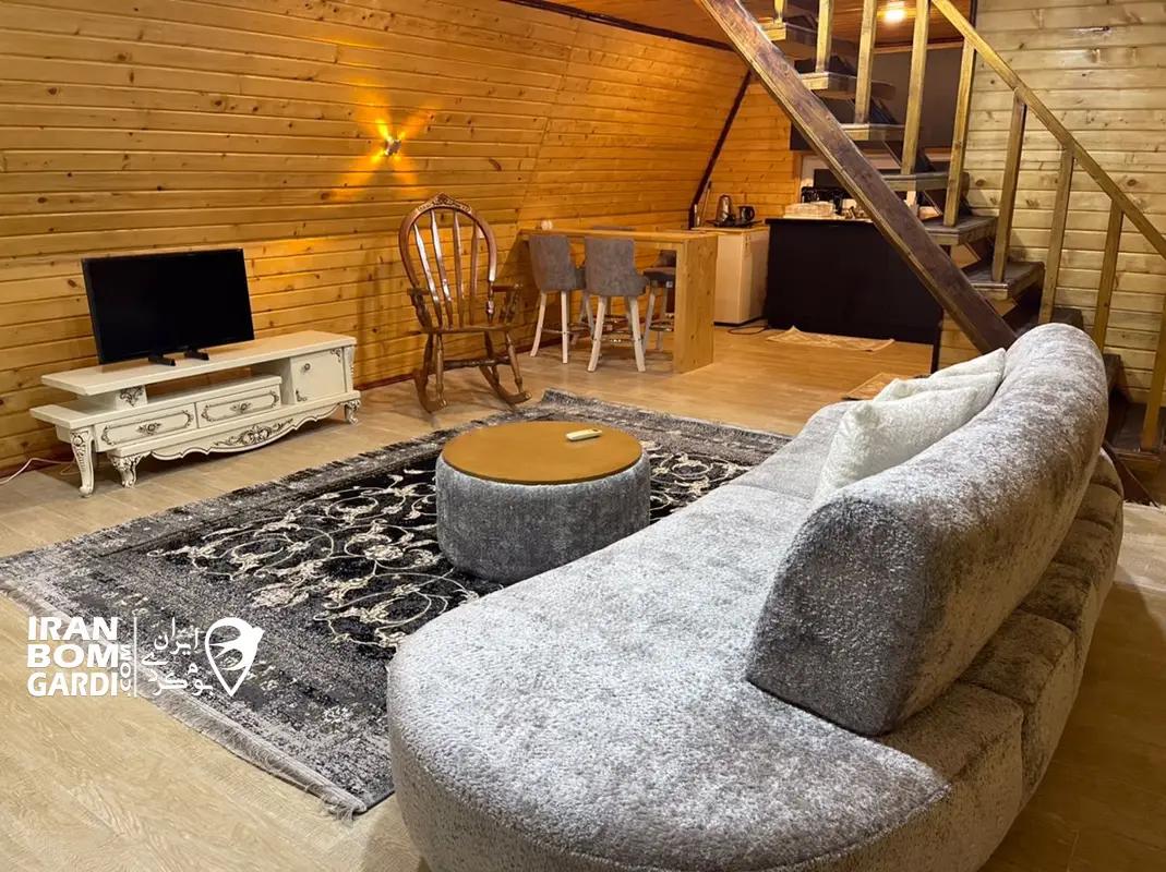 کلبه دربست با زیربنای 70 متر شامل اتاق پذیرایی، آشپزخانه با امکانات، بالکن، سرویس بهداشتی و حمام در طبقه همکف/ 1 اتاق خواب و تراس در طبقه اول می باشد.