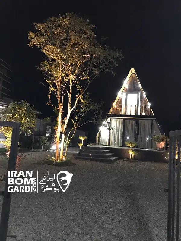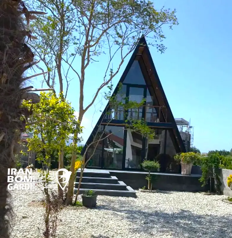 کلبه سوئیسی با فاصله 3 کیلومتری از ساحل چالوس واقع شده است. این اقامتگاه در زمینی به مساحت 330 متر بصورت دوبلکس بنا شده است.