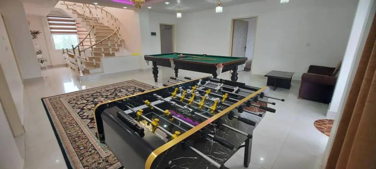 ویلا دربست با زیربنای 600 متر شامل اتاق پذیرایی، آشپزخانه با امکانات، استخر، جکوزی و سرویس بهداشتی در طبقه همکف/ 4 اتاق خواب، سالن بازی و تراس در طبقه اول/ روف گاردن در طبقه دوم می باشد.