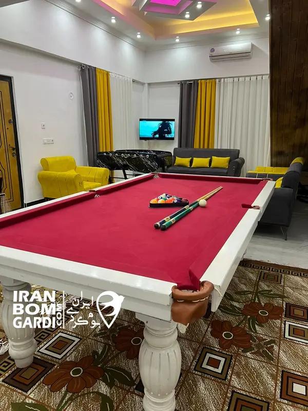 ویلا با زیربنای 140 متر شامل اتاق پذیرایی (مبلمان، تلویزیون و میز غذاخوری)، 2 اتاق خواب (2 تخت دبل و 1 سرویس کف خواب)، امکانات آشپزی (یخچال، اجاق گاز، سینک ظرفشویی، ظروف پخت و پز و غذاخوری)، باربیکیو، میز بیلیارد، استخر، فوتبال دستی، سیستم گرمایشی بخاری، سیستم سرمایشی کولر اسپلیت، سرویس بهداشتی ایرانی - فرنگی و حمام اختصاصی