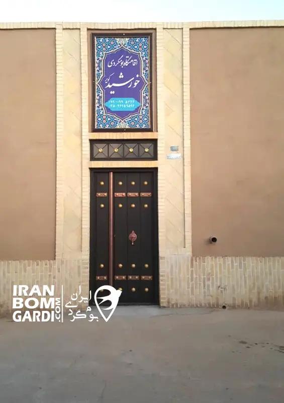 بوم گردی خورشید کویر در شهر یزد واقع شده است. این اقامتگاه در زمینی به مساحت 250 متر با زیربنای 200 متر به صورت همکف بنا شده است.