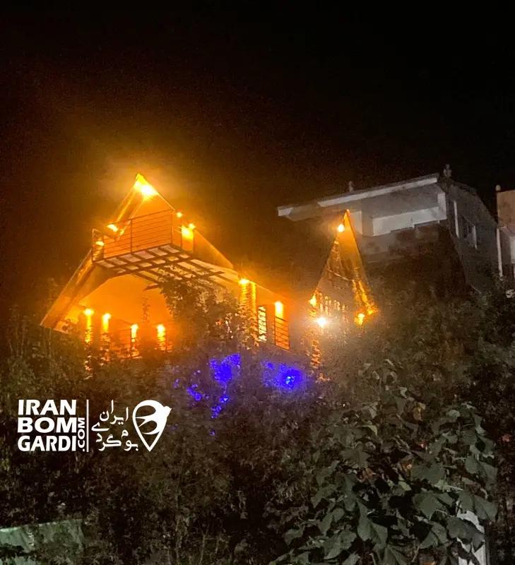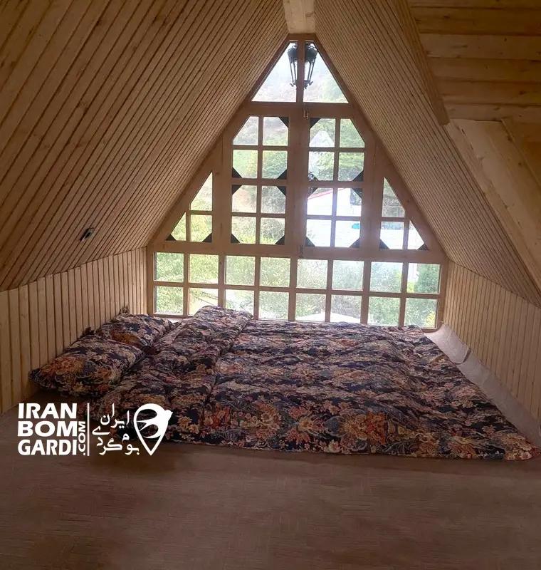 کلبه با زیربنای 150 متر شامل اتاق پذیرایی (مبلمان، سیستم صوتی و میز غذاخوری)، 2 اتاق خواب (2 تخت دبل و 2 سرویس کف خواب)، امکانات آشپزی (اجاق گاز، سینک ظرفشویی، قهوه ساز، سیخ کباب، ظروف پخت و پز و غذاخوری)، تراس، آلاچیق (میز و صندلی)، باربیکیو، استخر، سیستم گرمایشی بخاری، به دلیل شرایط جغرافیایی فاقد سیستم سرمایشی می باشد، سرویس بهداشتی ایرانی- فرنگی و حمام اختصاصی.