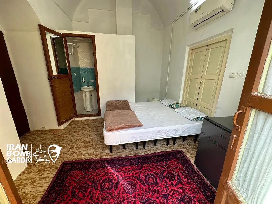 اتاق با زیربنای 12 متر شامل 1 تخت دبل، یخچال، سیستم گرمایشی بخاری گازی، سیستم سرمایشی کولر اسپلیت، سرویس بهداشتی فرنگی و حمام اختصاصی در اتاق، سرویس بهداشتی ایرانی مشترک در حیاط.