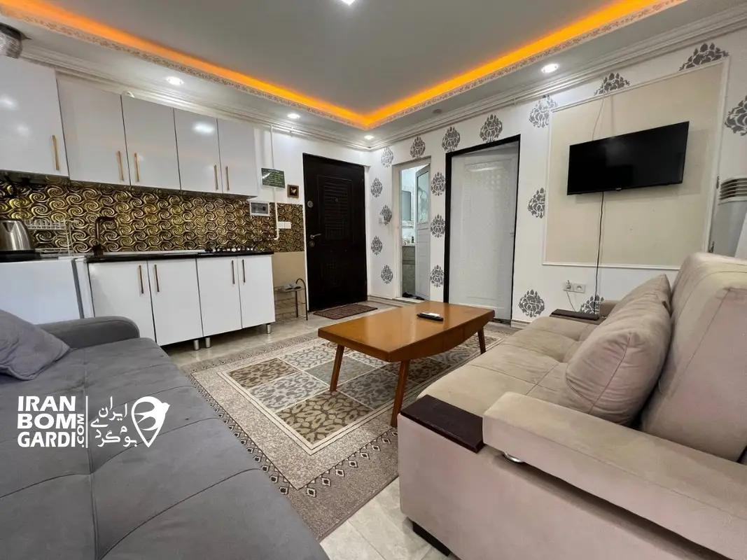 سوئیت با زیربنای 45 متر در طبقه دوم شامل اتاق پذیرایی (کاناپه تخت شو و تلویزیون )، 1 اتاق خواب (1 تخت دبل)، امکانات آشپزی (یخچال، اجاق گاز، چای ساز، سینک ظرفشویی، ظروف غذاخوری و ظروف پخت و پز)، سیستم گرمایشی شوفاژ، سیستم سرمایشی کولر اسپلیت سرویس بهداشتی فرنگی و حمام اختصاصی در سوئیت، سرویس بهداشتی ایرانی مشترک در محوطه.