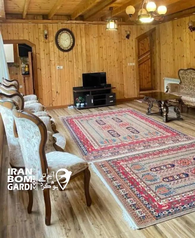 ویلا دربست دوبلکس با زیر بنای 130 متری شامل اتاق پذیرایی (مبلمان، میز غذاخوری و تلویزیون)، 2 اتاق خواب (2تخت دبل و 6 سرویس کف خواب)، آشپزخانه با امکانات (یخچال، اجاق گاز، سیخ کباب، سینک ظرفشویی، ظروف غذاخوری و ظروف طبخ)، باربیکیو، سیستم سرمایشی کولر اسپلیت، سیستم گرمایشی شوفاژ، سرویس بهداشتی ایرانی- فرنگی و حمام اختصاصی.