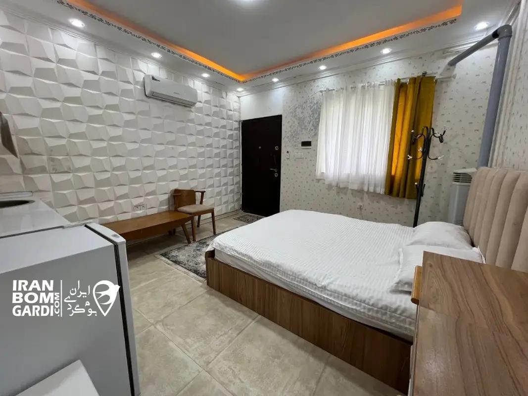 واحد با زیربنای 35 متر شامل 1 اتاق، امکانات آشپزی، سرویس بهداشتی و حمام اختصاصی می باشد. محوطه اقامتگاه با فضای سبز، آلاچیق، کافه رستوران و حوض، محیطی آرام و دلنشین برای استراحت میهمانان فراهم می کند. فاصله اقامتگاه تا سوپرمارکت و نانوایی 5 دقیقه به صورت پیاده روی می باشد.