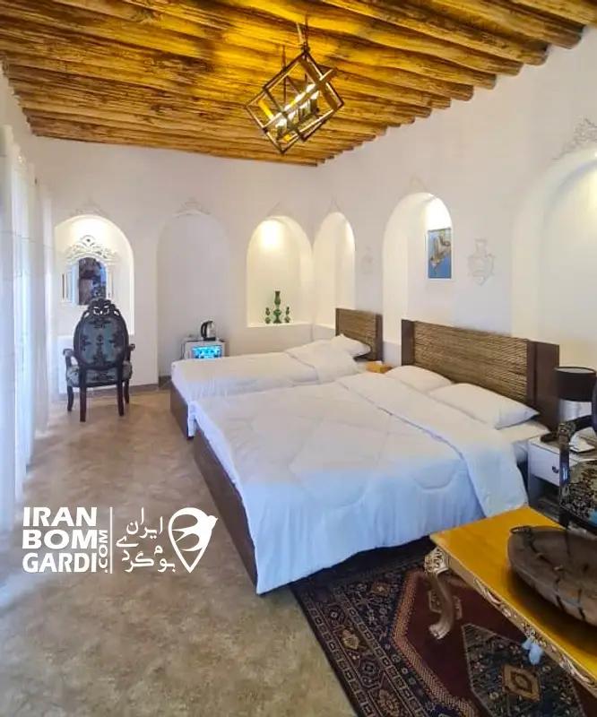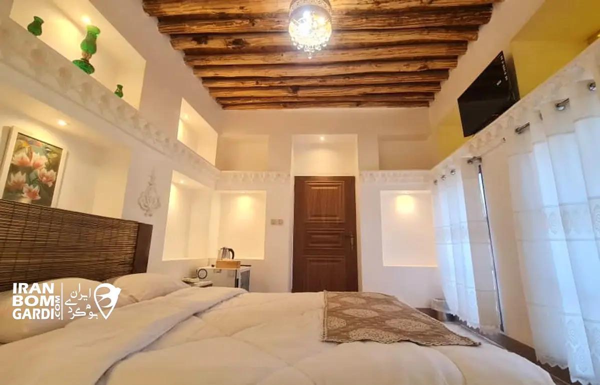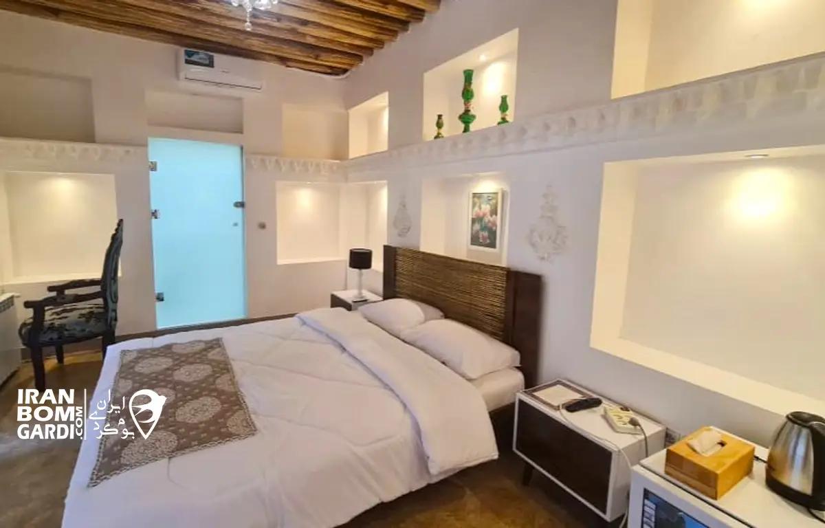 اتاق در طبقه همکف (دارای 4 پله) با زیربنای 26 متر شامل 1 تخت دبل، 1 تخت سینگل، 1 سرویس کف خواب، مبلمان، یخچال، تلویزیون، سشوار، کتری برقی، سیستم سرمایشی کولر اسپلیت، سیستم گرمایشی شوفاژ و گرمایش از کف، سرویس بهداشتی فرنگی و حمام اختصاصی در اتاق، سرویس ایرانی مشترک در محوطه.