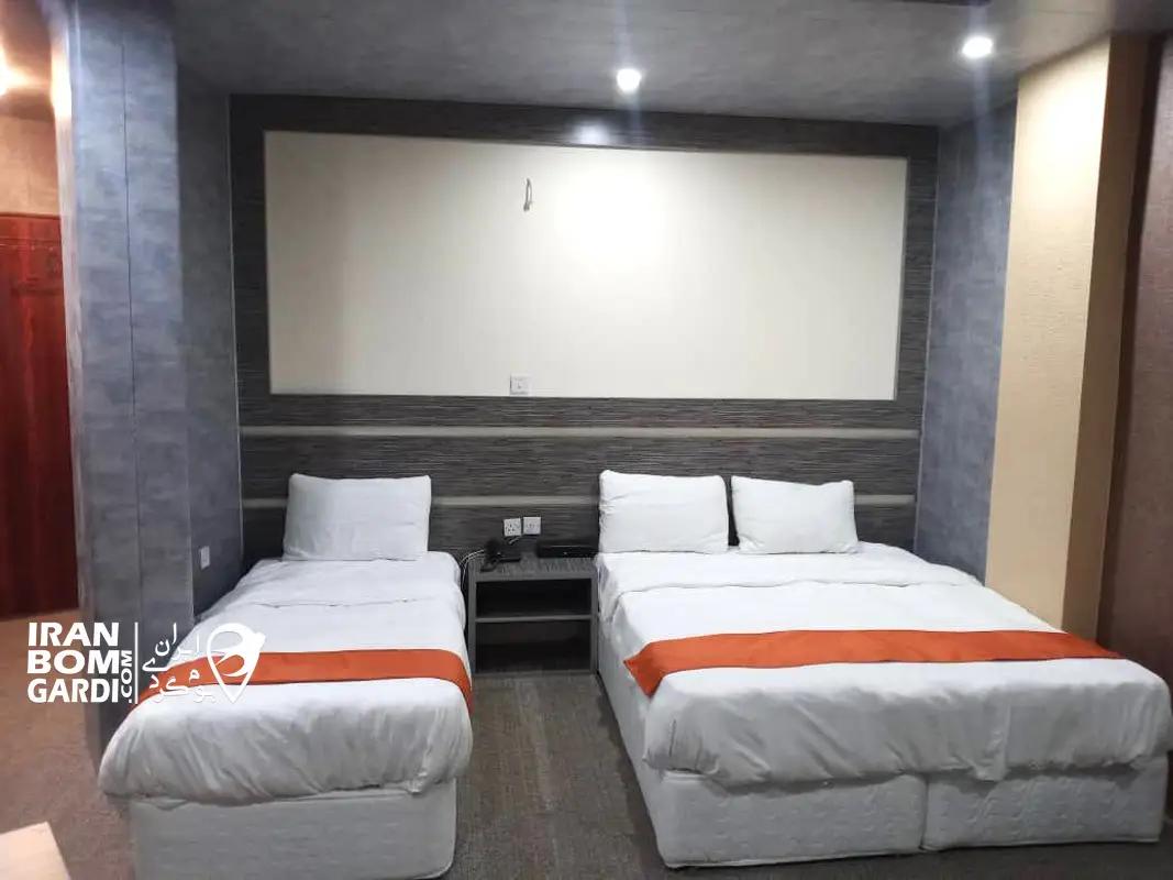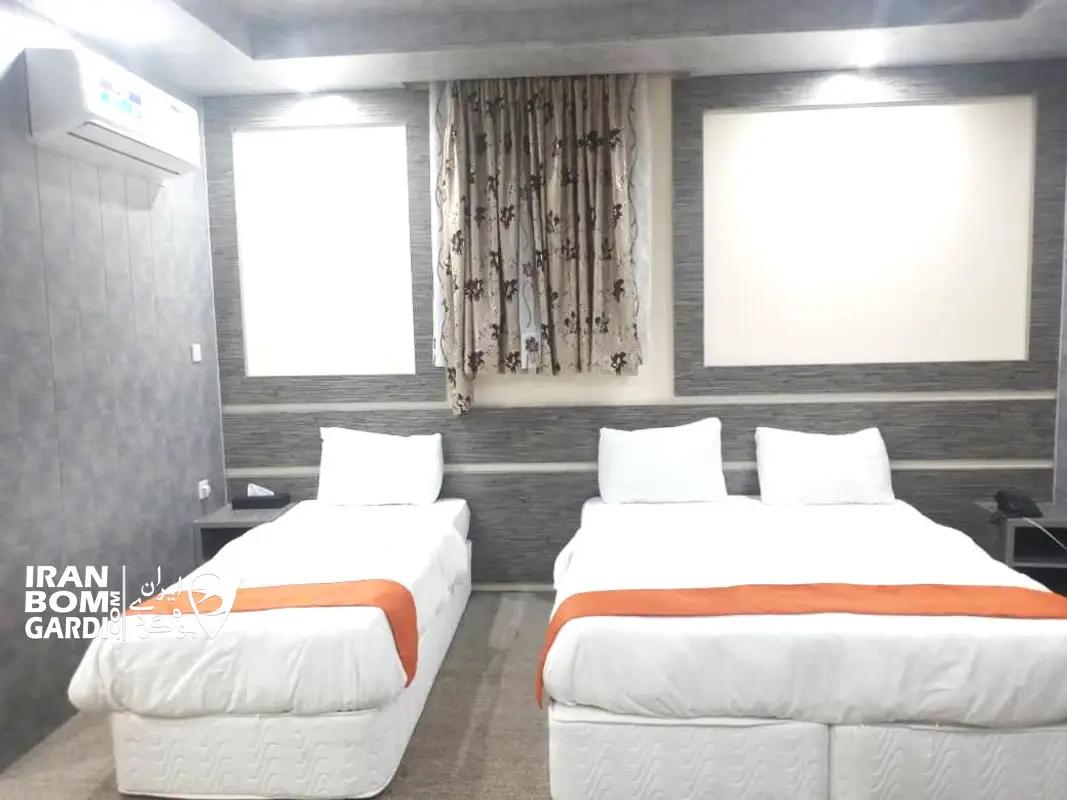 اتاق با زیربنای 25 متر در طبقه چهارم شامل 3 تخت سینگل، 2 سرویس کف خواب، تلویزیون، یخچال، چای ساز، سشوار، پک بهداشتی، سیستم سرمایشی کولر اسپلیت، بدلیل موقعیت جغرافیایی فاقد سیستم گرمایشی می باشد، سرویس بهداشتی ایرانی و حمام مشترک در راهرو.