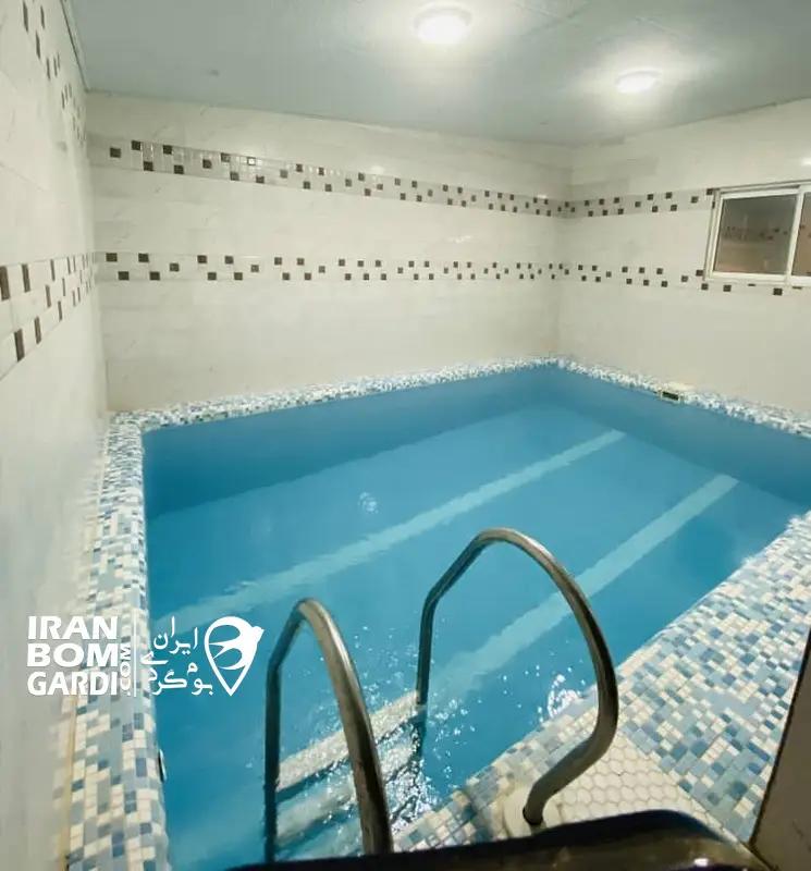 ویلا دربست با زیربنای 120 متر شامل اتاق پذیرایی (مبلمان، میز غذاخوری و تلویزیون)، 2 اتاق خواب (2 تخت دبل و 2 سرویس کف خواب)، آشپزخانه با امکانات (یخچال، اجاق گاز، سیخ کباب، سینک ظرفشویی، ظروف غذاخوری و ظروف پخت و پز)، منقل، استخر آب گرم، سیستم گرمایشی بخاری گازی، سیستم سرمایشی کولر اسپلیت، سرویس بهداشتی ایرانی- فرنگی و حمام اختصاصی.