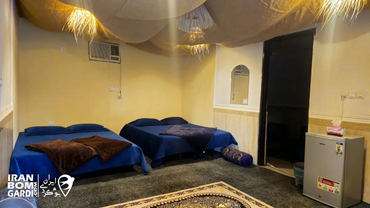 اتاق با زیربنای 12 متر شامل 2 تخت دبل، یخچال، سیستم سرمایشی کولر اسپلیت، بدلیل موقعیت جغرافیایی سیستم گرمایشی بخاری برقی، سرویس بهداشتی فرنگی و حمام اختصاصی.
