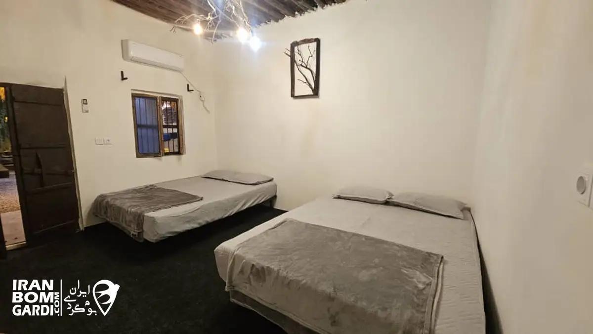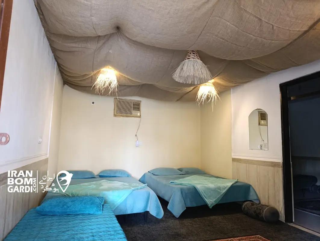 اتاق با زیربنای 12 متر شامل 2 تخت دبل، یخچال، سیستم سرمایشی کولر اسپلیت، بدلیل موقعیت جغرافیایی سیستم گرمایشی بخاری برقی، سرویس بهداشتی ایرانی و حمام اختصاصی در اتاق، سرویس بهداشتی فرنگی مشترک در حیاط.