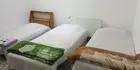سوئیت با زیربنای 70 متر در طبقه اول شامل اتاق پذیرایی (تلویزیون، مبلمان و میز ناهارخوری)، 1 اتاق خواب (3 تخت سینگل، 1 سرویس کف خواب و اتو)، آشپزخانه با امکانات (یخچال، اجاق گاز، سینک ظرفشویی، سیخ کباب، ظروف طبخ و غذاخوری)، سیستم گرمایشی شوفاژ، سیستم سرمایشی کولر آبی، سرویس بهداشتی ایرانی- فرنگی و حمام اختصاصی.