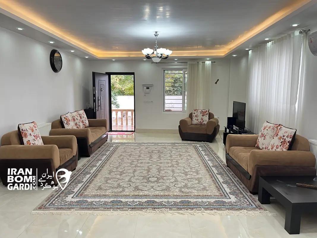 ویلا با زیربنای 120 متر شامل اتاق پذیرایی (مبلمان، تلویزیون و میز غذاخوری)، 1 اتاق خواب (1 تخت دبل، 6 سرویس کف خواب و اتو)، آشپزخانه با امکانات (یخچال، اجاق گاز، سینک ظرفشویی، ماشین لباسشویی، چای ساز، سیخ کباب، ظروف غذاخوری و ظروف طبخ غذا)، تراس، میز فوتبال دستی، باربیکیو، سیستم گرمایشی شوفاژ، سیستم سرمایشی کولر اسپلیت، سرویس بهداشتی ایرانی- فرنگی و حمام اختصاصی.
